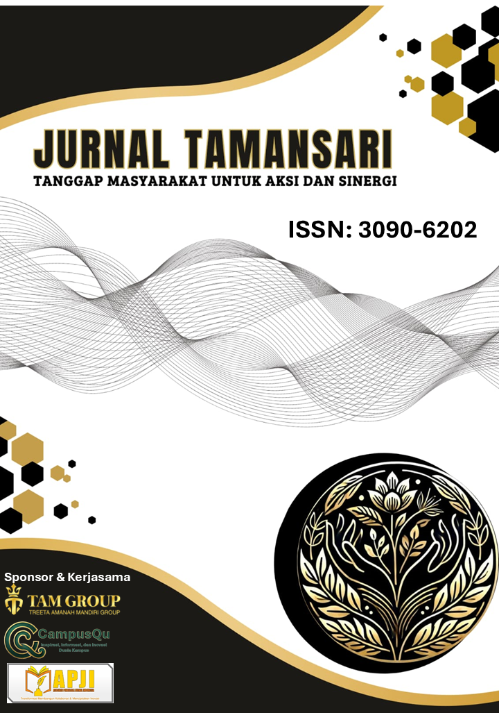 Jurnal TAMANSARI (Tanggap Masyarakat untuk Aksi dan Sinergi) adalah jurnal ilmiah yang menerbitkan hasil kegiatan pengabdian masyarakat berbasis ilmu pengetahuan, teknologi, dan inovasi. Jurnal ini bertujuan untuk menjadi wadah bagi akademisi, praktisi, dan komunitas dalam mendokumentasikan serta menyebarluaskan praktik terbaik dalam pemberdayaan masyarakat.